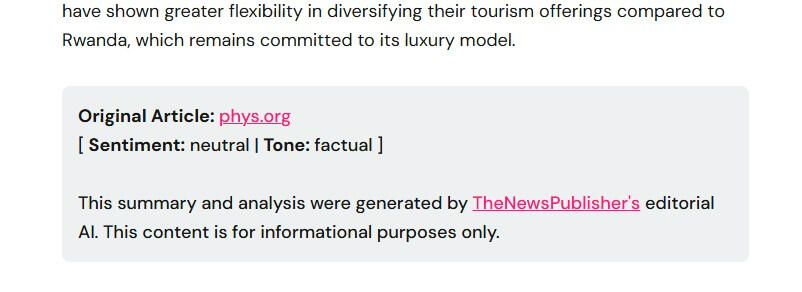 No fine-print footers. Every article features a high-visibility callout box attributing both the Source and the AI Editorial Process.